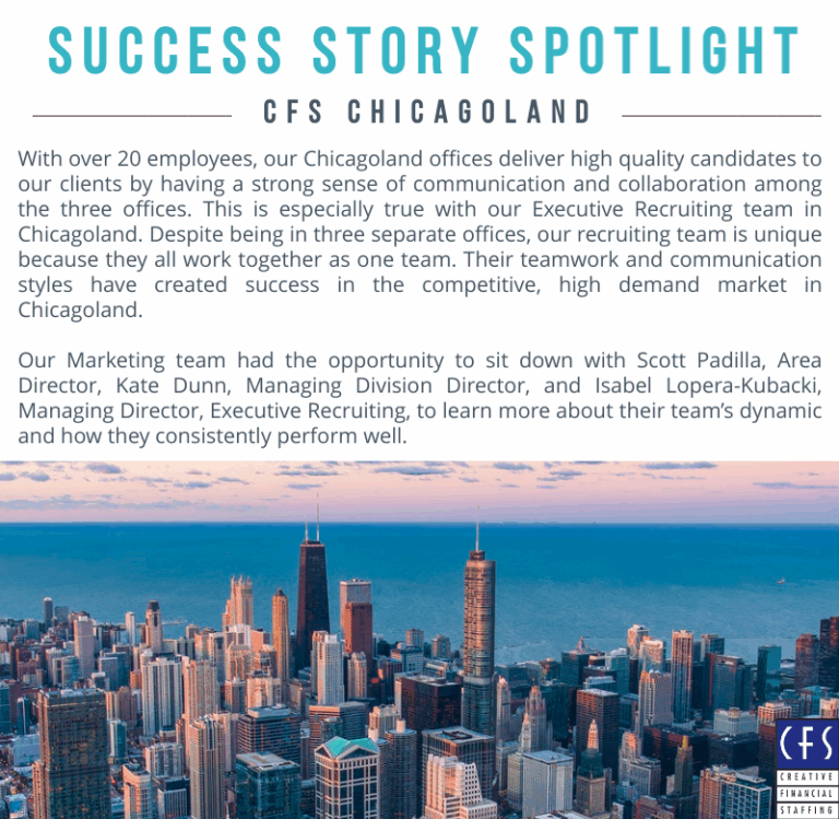 In our latest #SuccessStorySpotlight, learn how our Chicagoland offices’ teamwork and communication styles have created success in a competitive, high-demand market. For any of your staffing needs, contact CFS today!