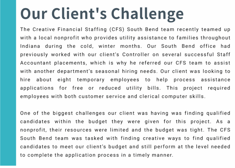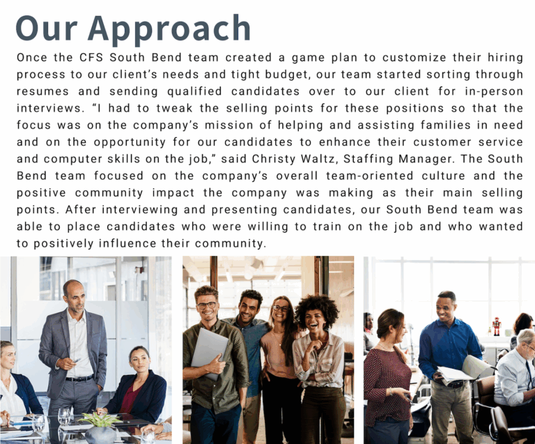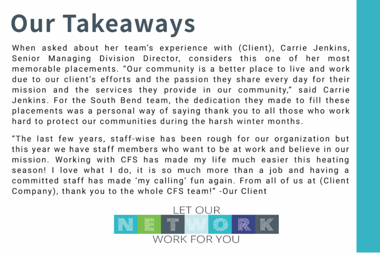 In our latest #SuccessStorySpotlight, learn how our South Bend office teamed up with a local nonprofit to help assist with its seasonal hiring needs. For any of your staffing needs, contact CFS today!